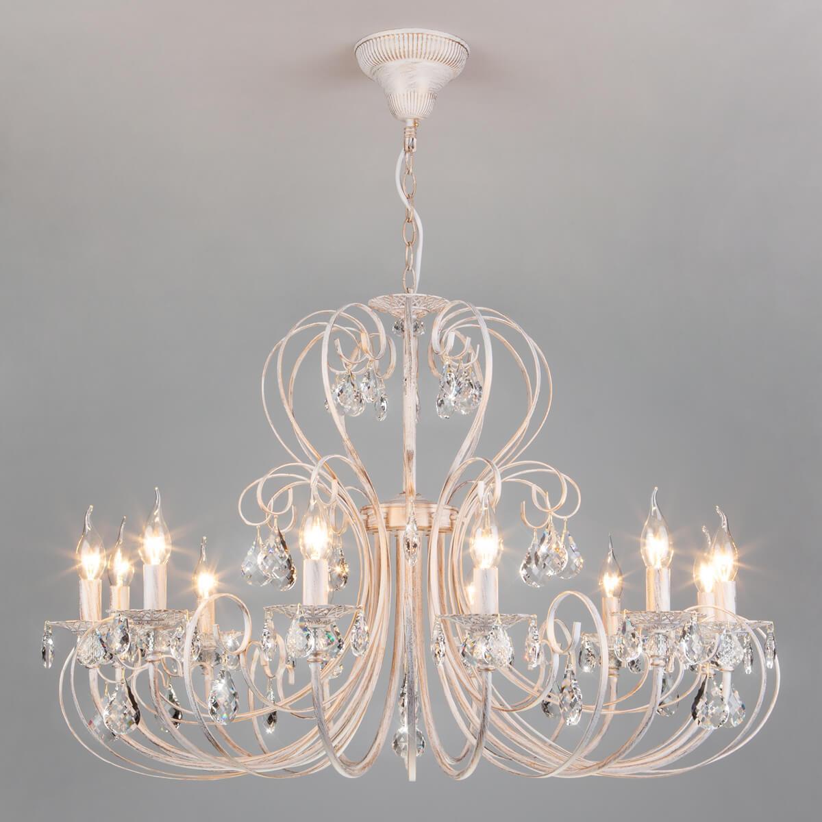 Подвесная люстра Eurosvet 3305/12 белый с золотом/прозрачный хрусталь Strotskis